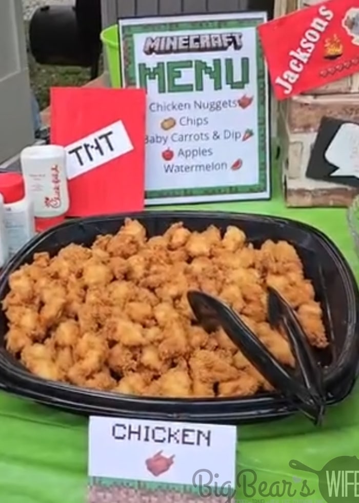 @bigbearswife For Jackson’s Minecraft birthday party, I set up a DIY Minecraft Trail Mix Station 🎉⛏️ and it was a HUGE hit with the kids! Everyone got to grab a bag and build their own custom trail mix with Minecraft-inspired snacks: 🟩 🟩 🟩 🧨 Twizzlers = TNT 🔥 Cheese Balls = Fire ❄️ Mini Marshmallows = Snowballs 🪵 Pretzel Sticks = Sticks 🥨 Pretzel Squares = Trap Doors 🟢Wicked Cereal = SlimeBalls 🐠 Goldfish Crackers = Fish 🍪 Mini Chocolate Chip Cookies = Minecraft Cookies 🟩 🟩 🟩 #MinecraftBirthday #MinecraftPartyIdeas #DIYTrailMixStation #KidsPartyIdeas #MinecraftSnacks ♬ Subwoofer Lullaby – C418