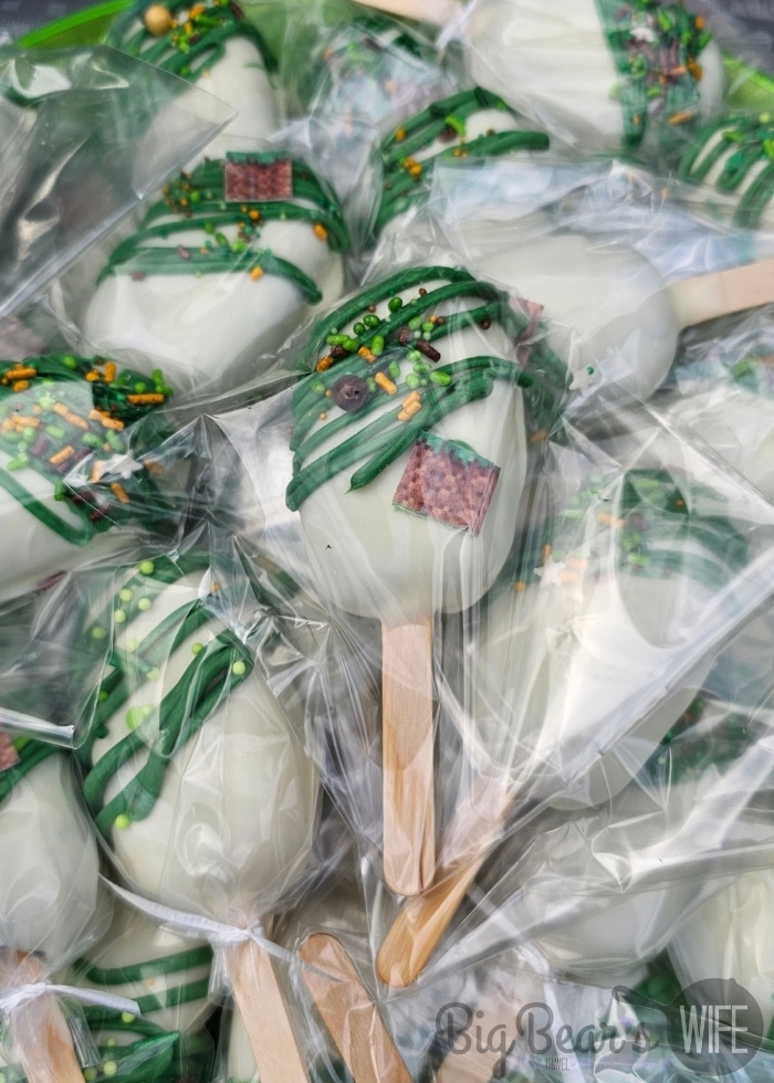 I made white cake pops and dipped them in white candy melts, then added a green candy melt drizzle to give them that Minecraft feel. To finish them off, I used Minecraft-themed sprinkles from Sprinkle Pop, which added the perfect pop of color and texture. I don’t think Sprinkle Pop carries this exact Minecraft sprinkle mix anymore, but you can find very similar Minecraft-style sprinkles on Amazon.