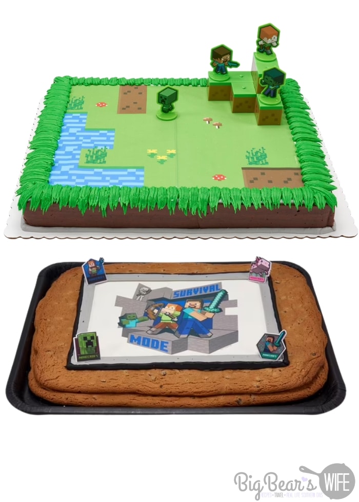 So we ordered Minecraft cupcakes for his class, and a Minecraft Cake and a Minecraft Cookie Cake for his party.