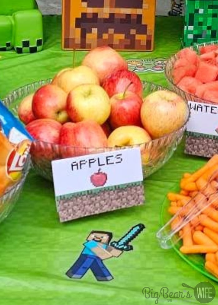 Jackson only wanted us to have foods that you could find in Minecraft, so that is what we went with, the following for his Minecraft birthday party food: